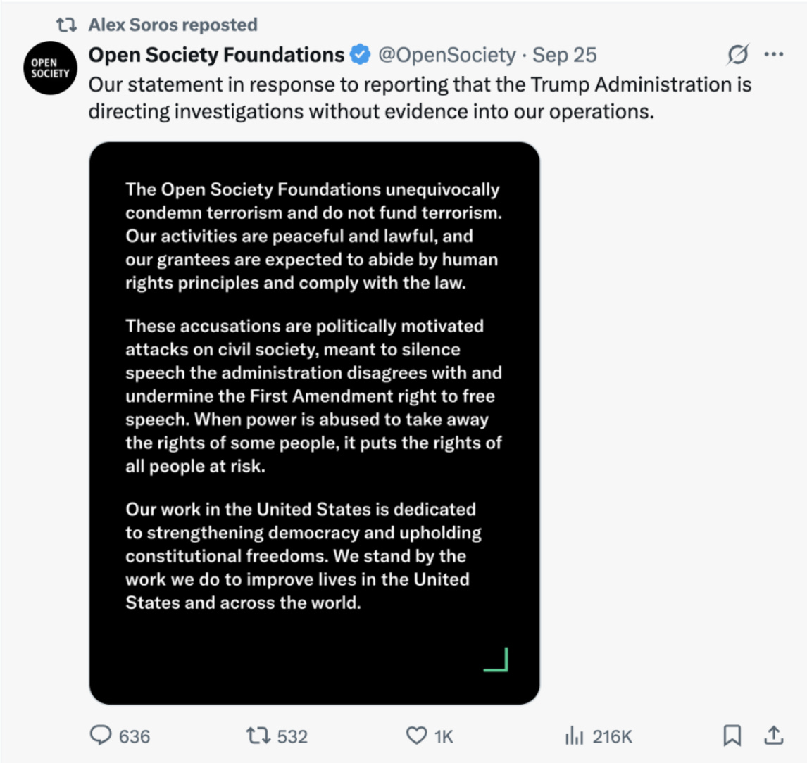 “Our activities are peaceful and lawful, and our grantees are expected to abide by human rights principles and comply with the law,” claimed OSF, calling the accusations “politically motivated attacks on civil society.”